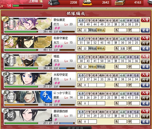 このゲーム、目的の中級刀剣ゲットする方が難しい気がする・・・
