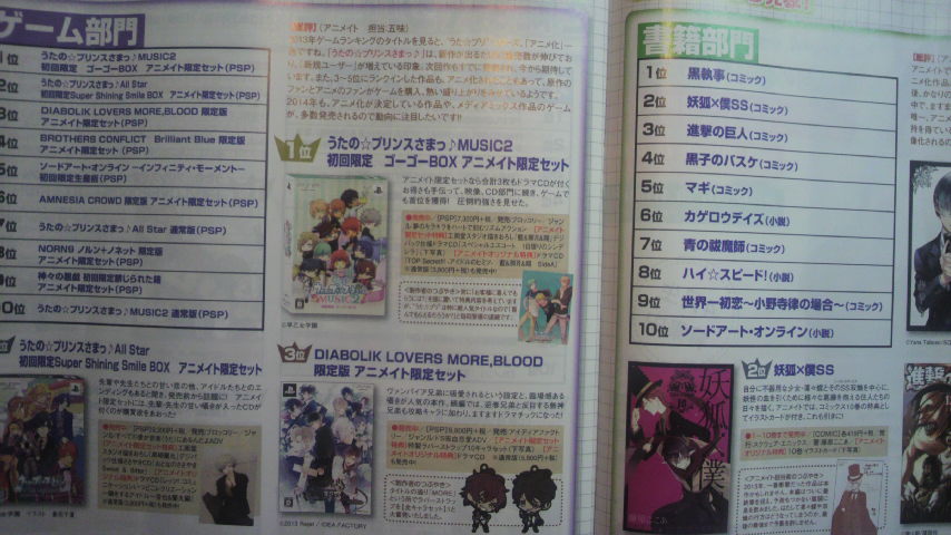 黒執事といぬぼくの独走っぷりが凄い。 執事モノ相変わらず強い!! 進撃が3位なのは意外だったなあ… 今期は進撃ブレイクに見せかけた、うたぷりブレイクでござった… でも、同人誌アンソロは黒子さん一強だったね… 喪服のせいだね… 久々に企業じゃないともう同人イベントとか無理な感じが出たねえ…(;´д`) あれが個人イベントだったらえらいこっちゃ…(;´д`) |