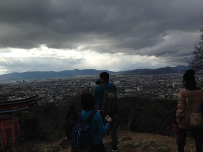 そしてどんどん登っていくと、中腹くらいで京都の町を見下ろす風景が見れます。