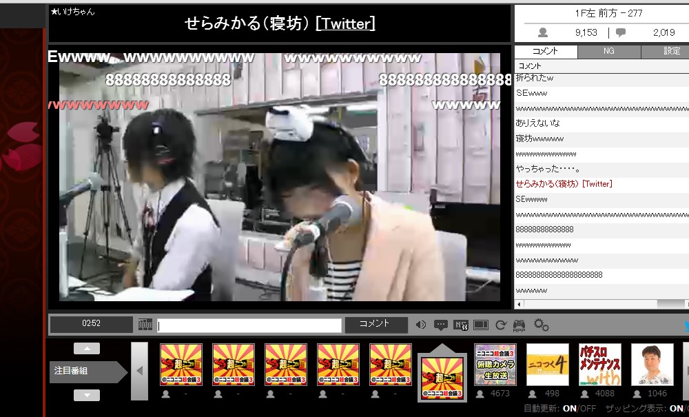 今日は昨日プレミアですら追い出し食らっていたらしく、苦肉の策で、何個もミラーチャンネル増やしたみたいです。これなら確かにおいだされないね。