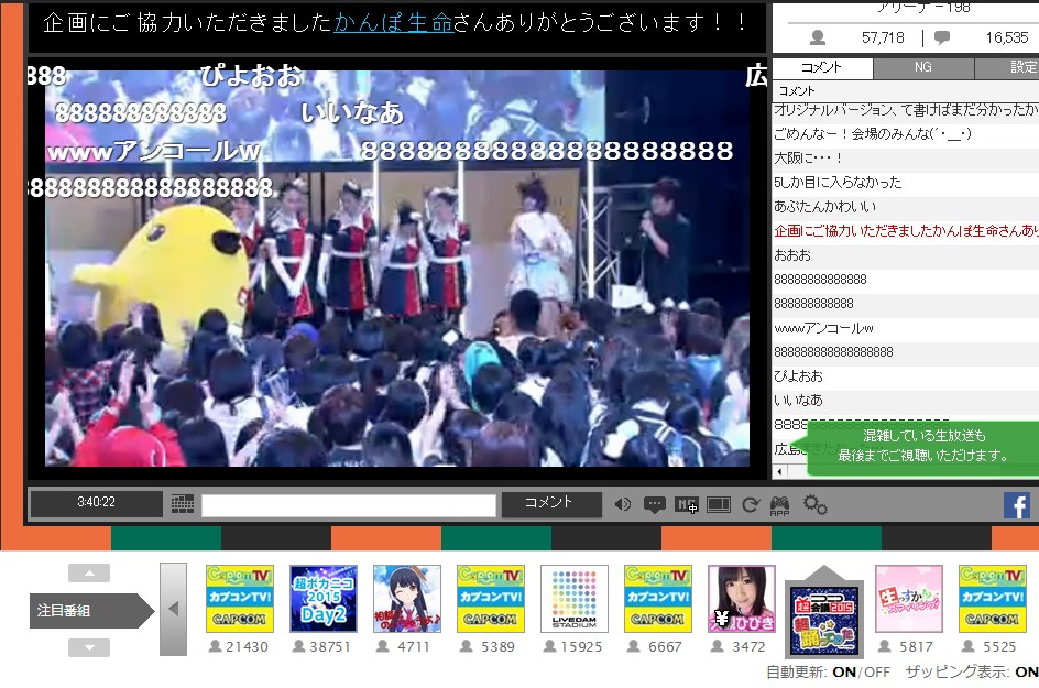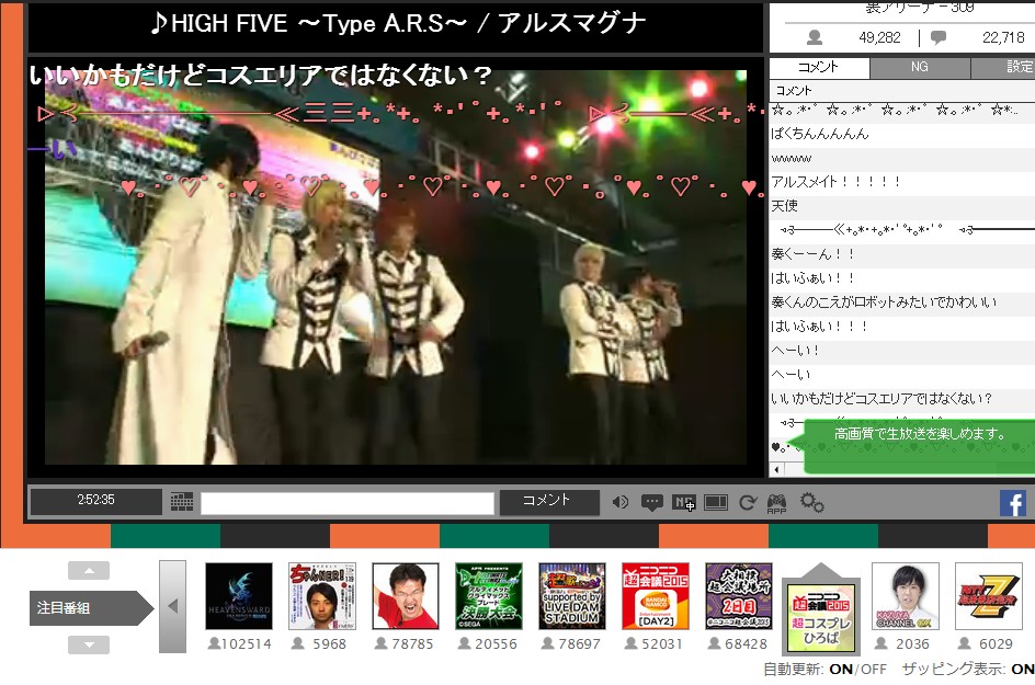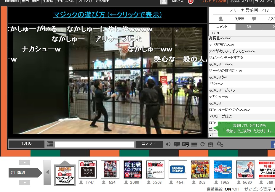 すごい学芸会ノリで愉しい 他のコーナーはみんな観客おしゃれしてるけど踊ってみたはみんなTシャツとジャージだらけで 相変わらず異様な感じである。 あと全ての番組が去年より和服度が上がってる。 和楽器バンドのせいか和銅鑼が珍しく楽器である。 どこのブースも刀剣乱舞コスが居る。 大ブレイクだわあ |