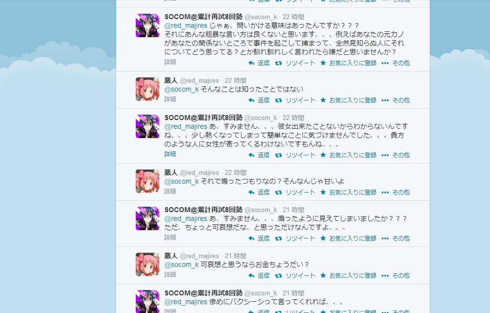 何故かタクヤさんに質問が集まったらしい。 タクヤさんはAV男優の嫁のようなポジションになってしまったんです???ロリコンノンケすら虜にするタクヤさん聖母。 ていうか、マジキチなツイッターばっかりでもうなにがなんだか・・・ AV男優はBLにハマったせいでロリコンに走ったのではとか AV男優のツイッター自体もカオス。 追記> タクヤさんであそぶなよお うーん・・タクヤさんが攻め受け・・・? |